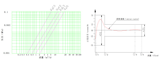 示值誤差限與流量曲線FLOW-ERROR CURVE 壓力損失曲線 Pressure loss curve