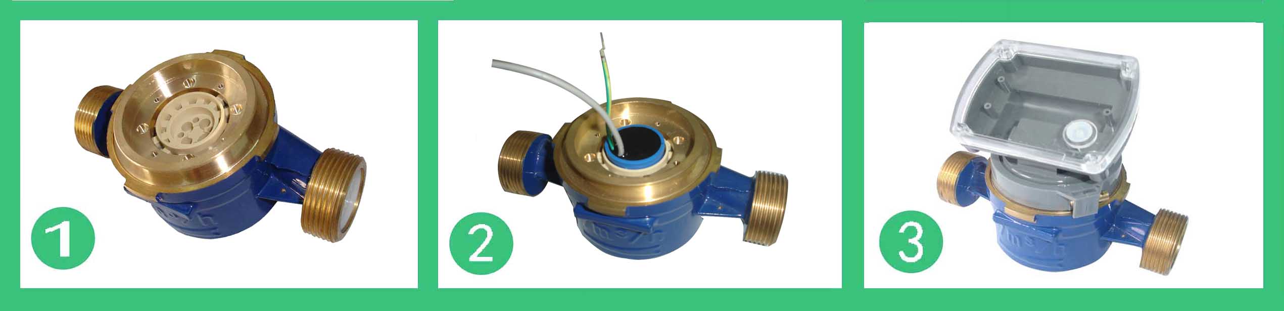 CD02TAR單流束無磁熱量表流量計的結(jié)構(gòu)如圖,其工作原理是:熱水進入流量計,經(jīng)進水導(dǎo)向孔沖擊計量腔內(nèi)的葉輪旋轉(zhuǎn),再經(jīng)出水導(dǎo)向孔流出流量計。葉輪上面嵌有不銹鋼膜片,隨葉輪旋轉(zhuǎn),在隔板上端接近不銹鋼膜片處可裝電感類傳感器,接受葉輪旋轉(zhuǎn)的周期信號。